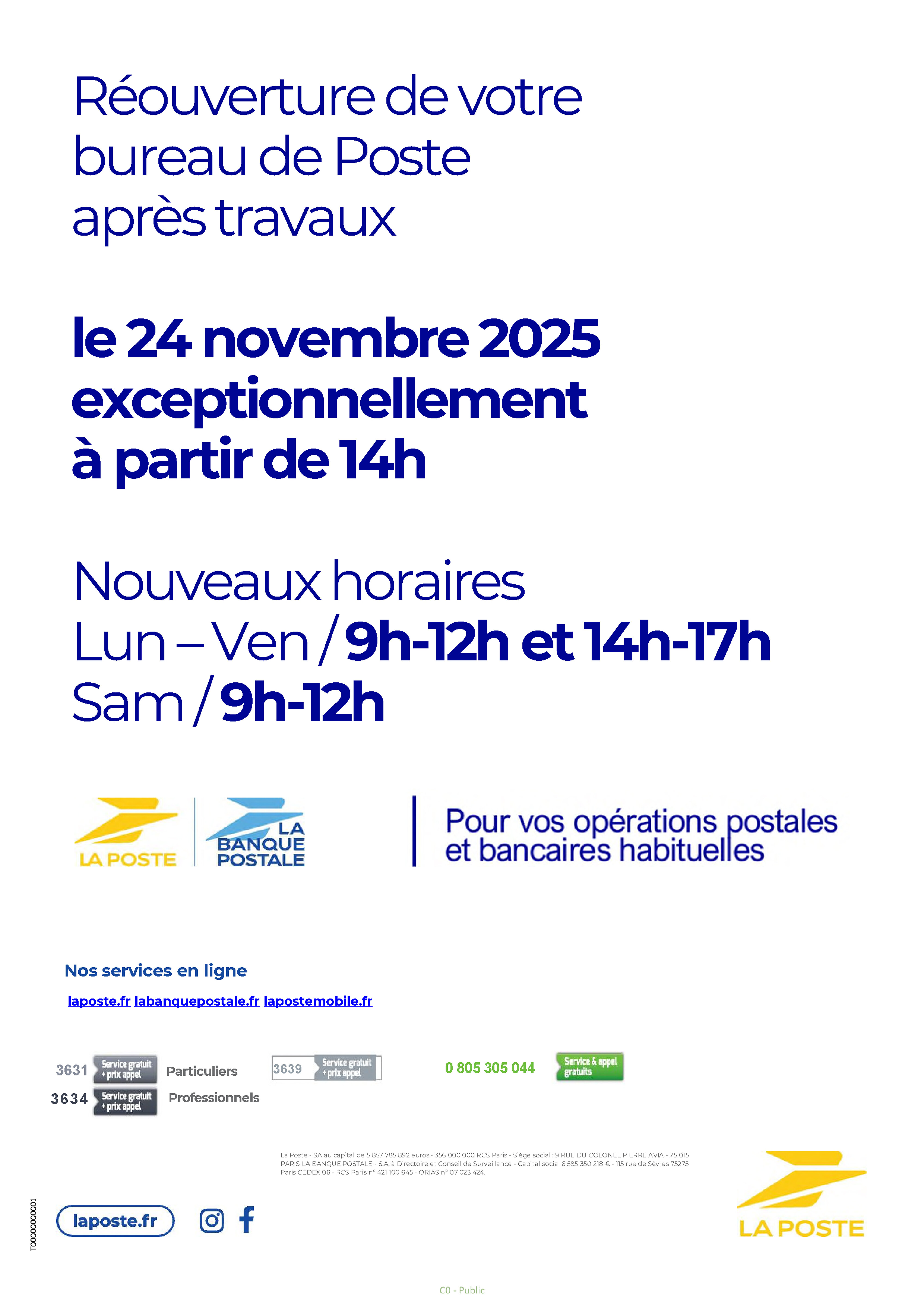 LA POSTE a réalisé des travaux de modernisation du bureau de Castelsarrasin, Place des Belges, qui rouvrira au public :