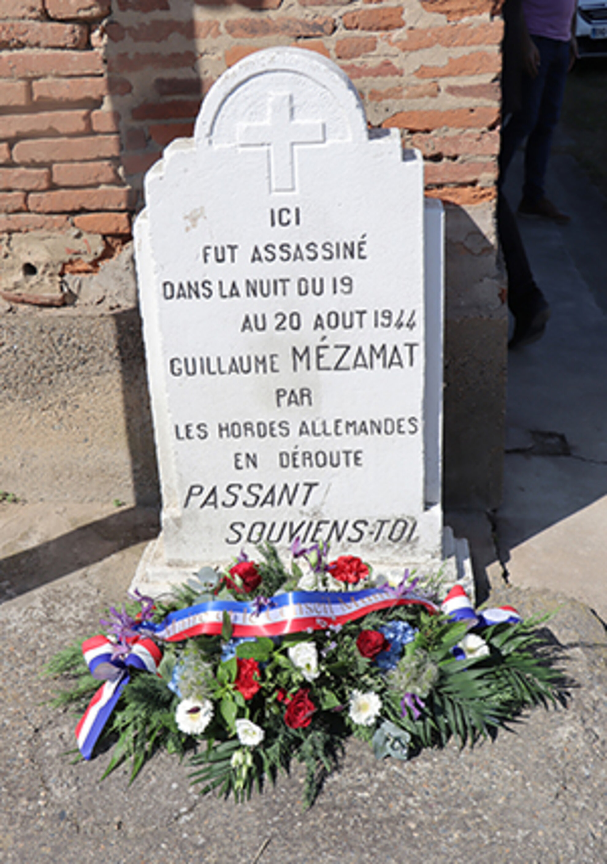 Le 19 août 1944, Guillaume Mézamat a courageusement refusé de céder sa bicyclette à un soldat allemand en fuite, au lieu-dit Caillau, la veille de la Libération de Castelsarrasin. Il y perdit la vie.