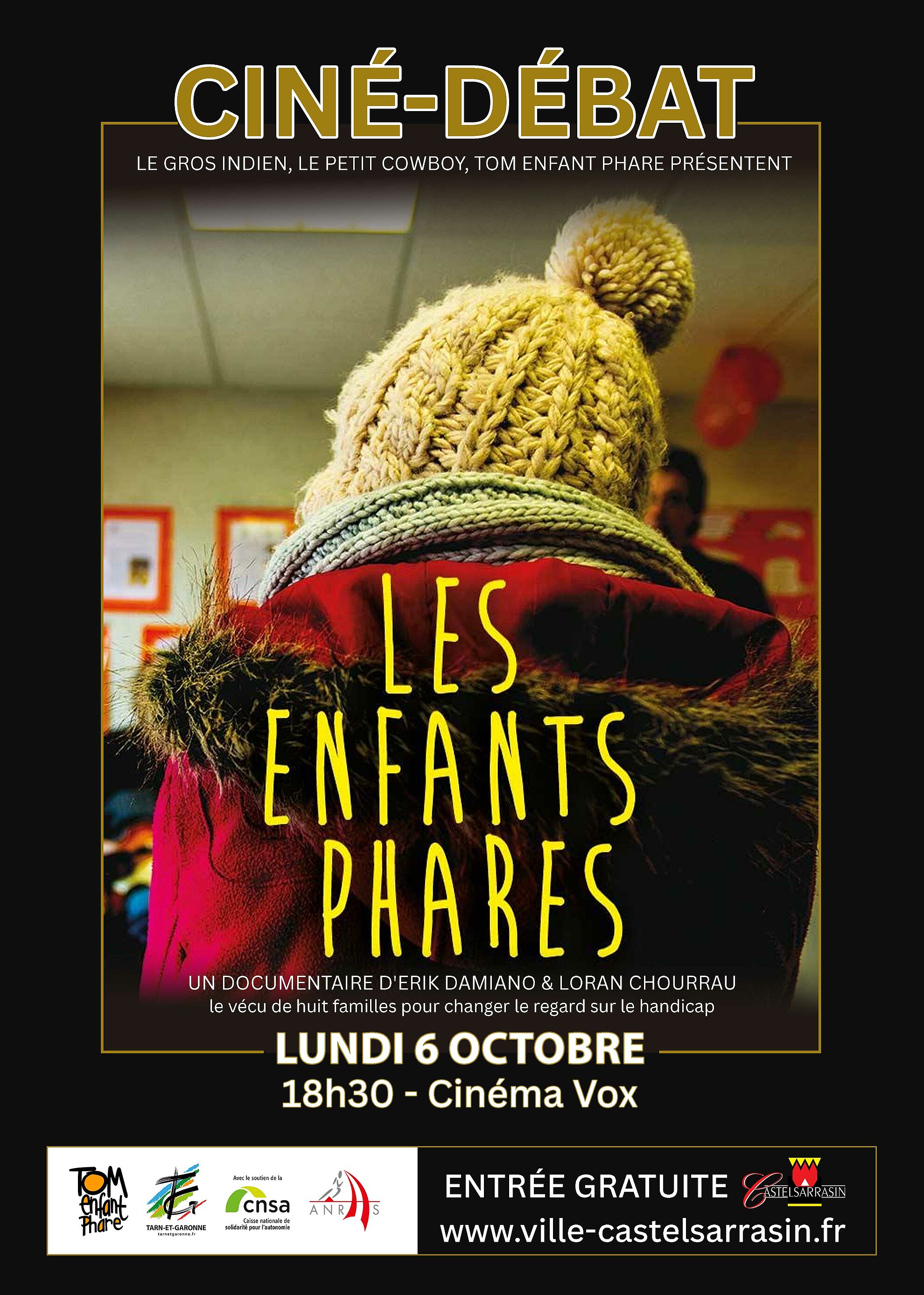 Un événement organisé par l’ANRAS, en partenariat avec la Ville de Castelsarrasin et le Cinéma Vox, animé par l’association Tom Enfant Phare, avec le soutien du Département de Tarn-et-Garonne et de la CNSA.
