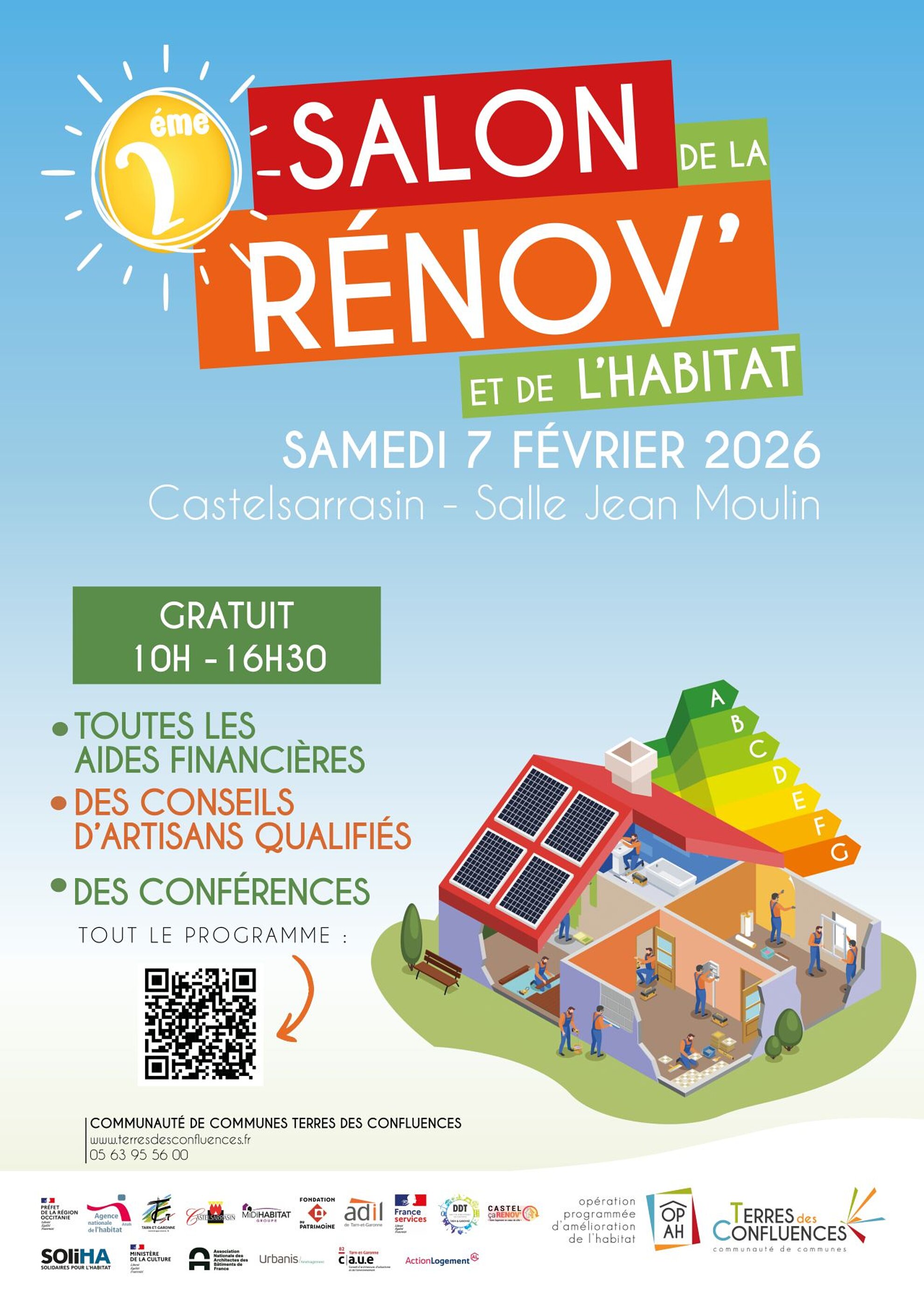 Le samedi février, dès 10h30, à la Salle Jean Moulin de Castelsarrasin, venez découvrir toutes les solutions pour rénover, moderniser et rendre votre logement accessible. Que vous envisagiez de réaliser des travaux pour améliorer le confort thermique, adapter votre logement pour bien vieillir, entreprendre une rénovation globale ou simplement vous renseigner, le Salon de la Rénov’ vous permettra de rencontrer en un même lieu des interlocuteurs experts pour répondre à vos questions et vous guider dans vos démarches.
