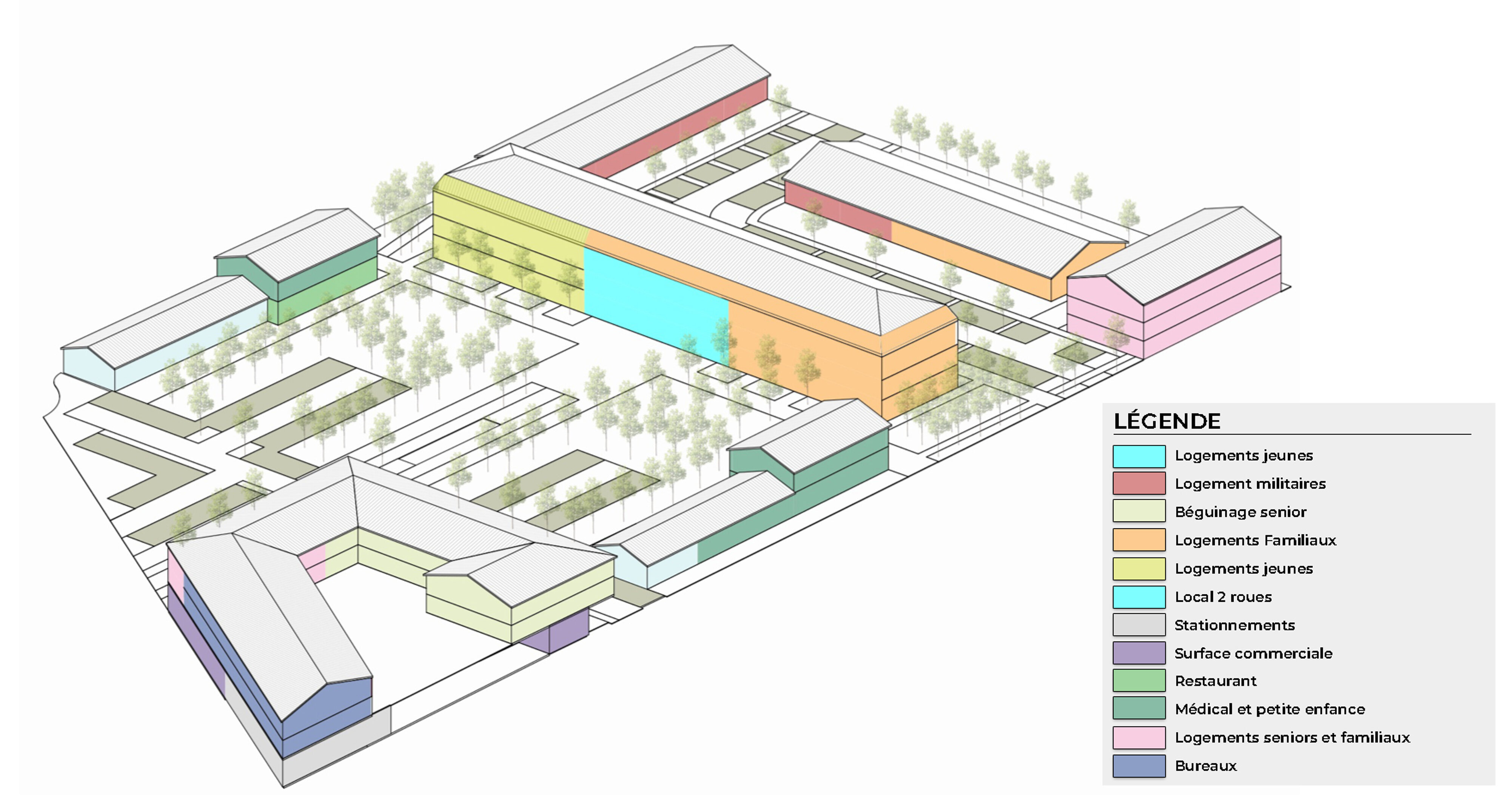 - Des logements pour tous les parcours résidentiels : près de 160 logements (jeunes actifs, seniors, famille, sociaux, béguinage, pour l’armée)