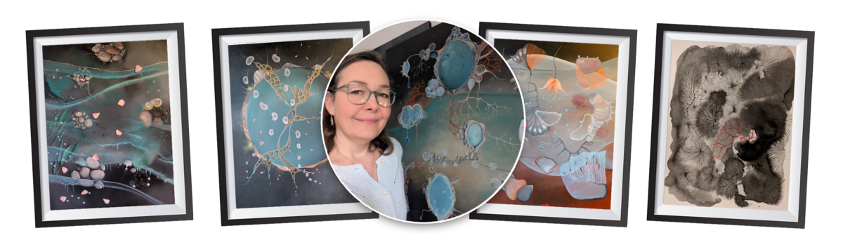 « Françoise Gacon explore à travers sa peinture la profondeur des terres et des airs, des corps et de l’âme. Elle mêle les états de vie pour en dégager une symbolique, des émotions. »