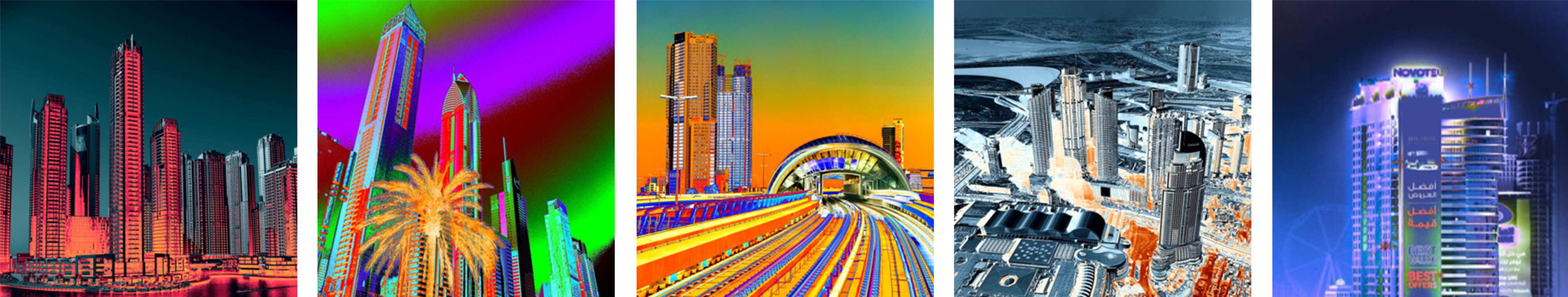 Pour répondre à ses aspirations, l’artiste met au point un procédé de changement des couleurs de l’image, qui rompt cette monotonie. Il sème le trouble en conservant les formes, l’ADN de la photographie, et surprend par le truchement des couleurs. La couleur prédomine alors sur la forme.