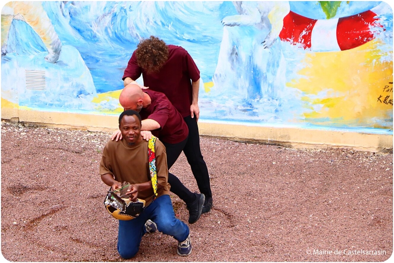 Une fresque à six mains intitulée "Notre Planète" réalisée dans la cour intérieure de la médiathèque par trois artistes d'univers différents :