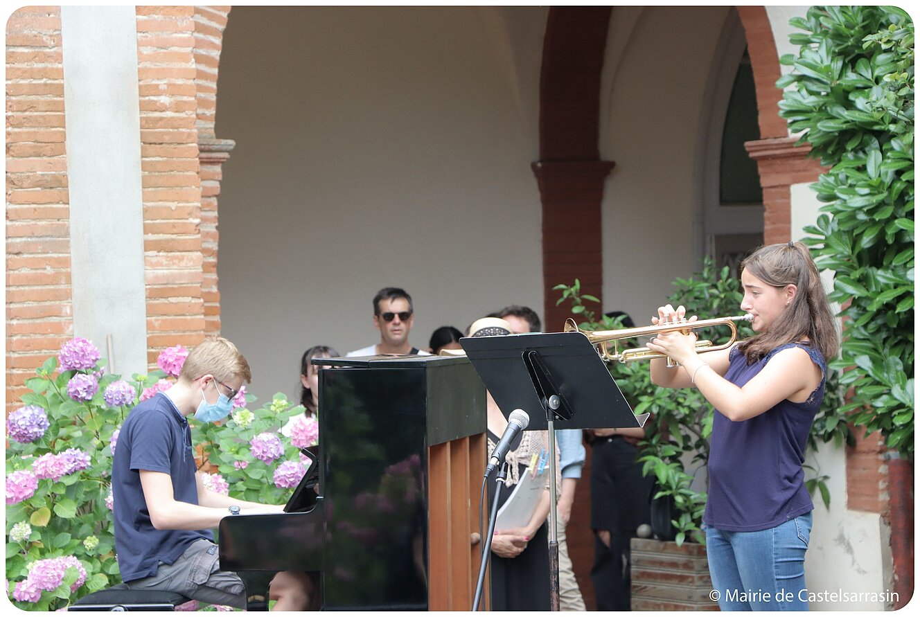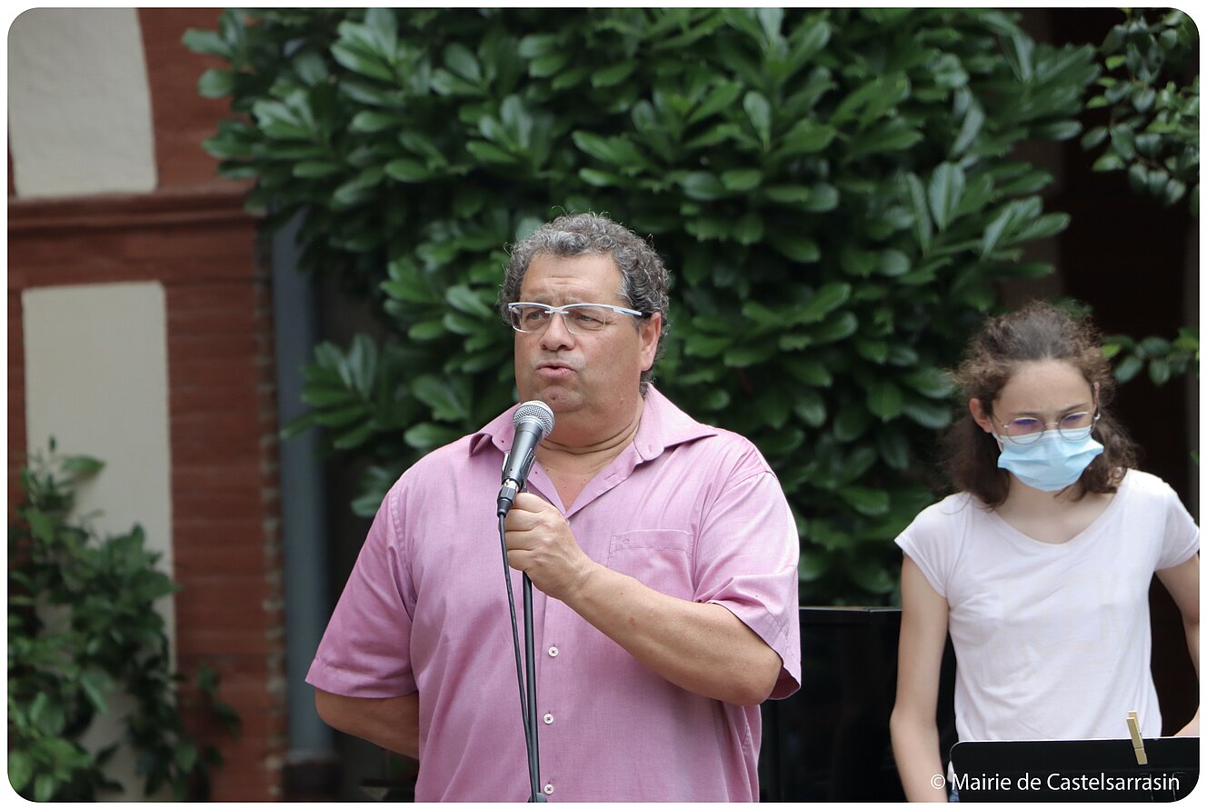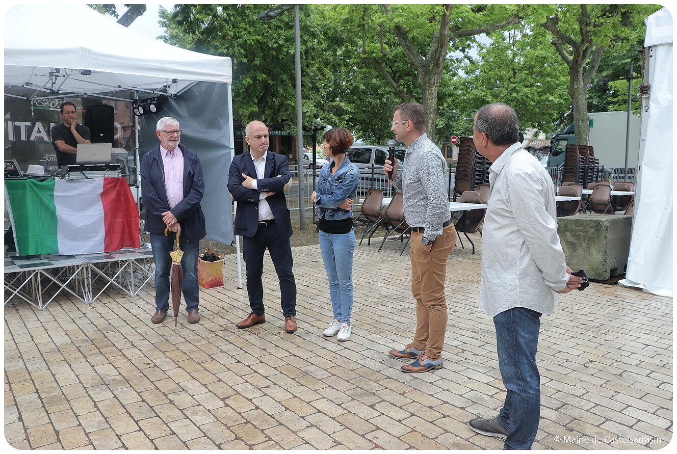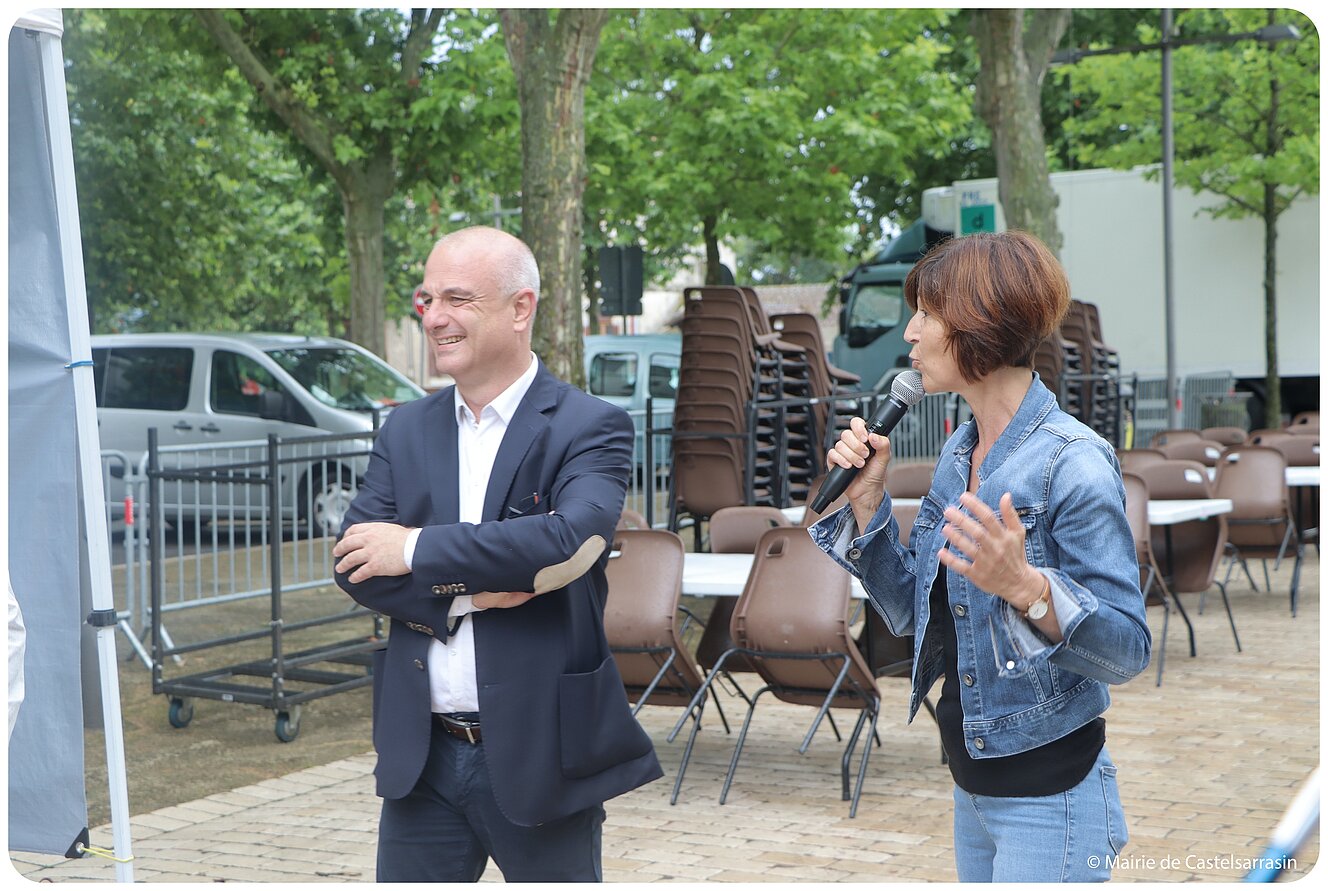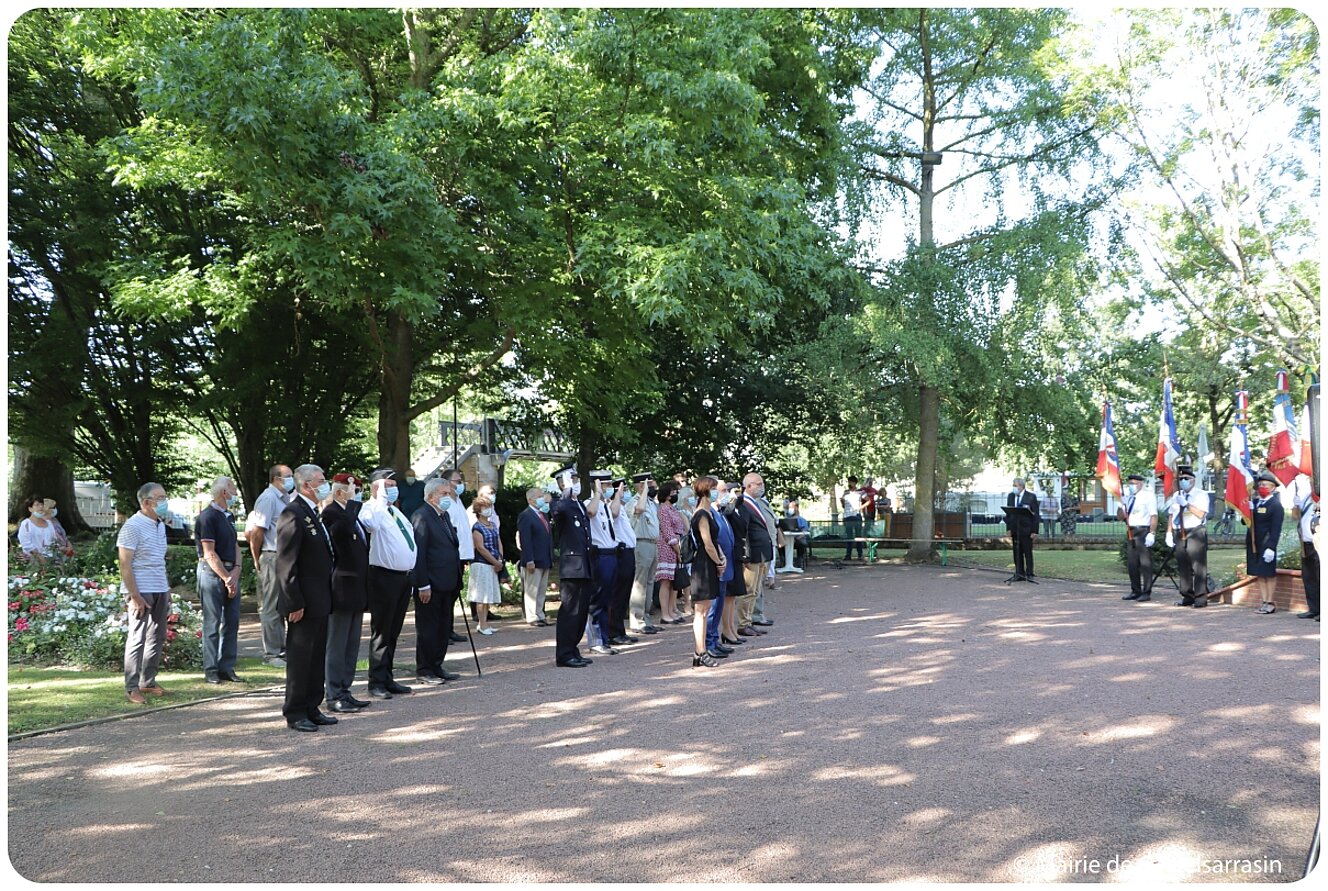 Les commémorations du 77ème anniversaire de la Libération de Castelsarrasin ont débuté par un hommage rendu à Guillaume MEZAMAT, qui perdit la vie dans la nuit du 19 au 20 août 1944. C’est en présence de son arrière petit fils Benoit et de son petit fils Léo accompagné de son épouse Marie-Thérèse, que Monsieur le Maire a déposé une gerbe sur la stèle érigée à sa mémoire. C'est ensuite au Monument aux Morts que la cérémonie officielle de la Fête de la Libération de la ville s'est déroulée.