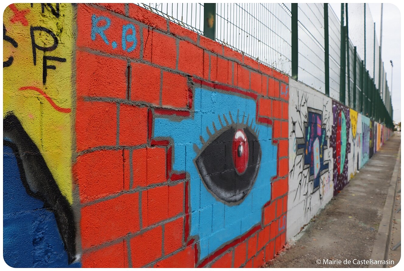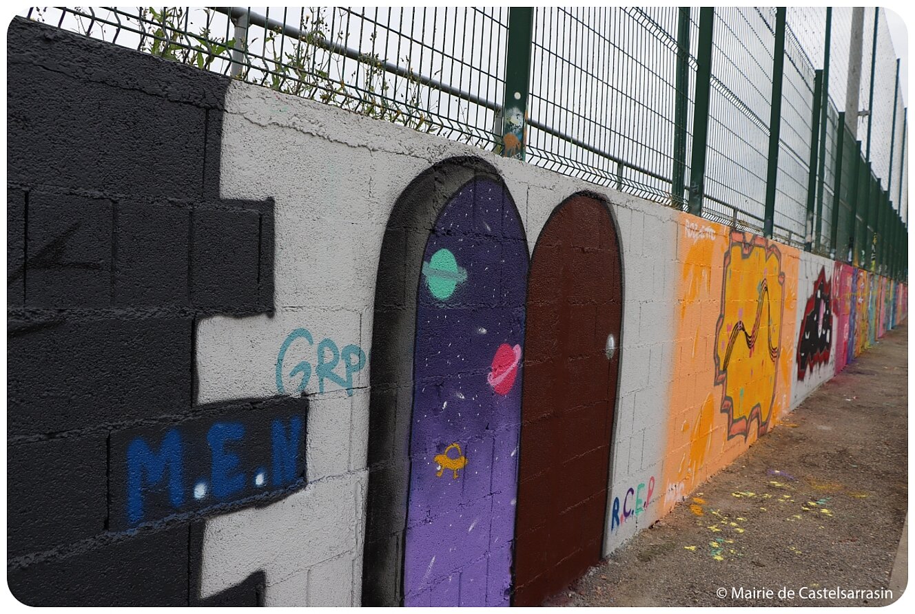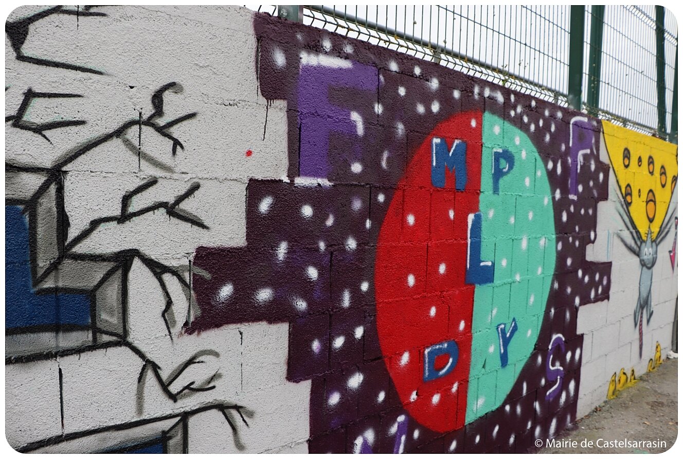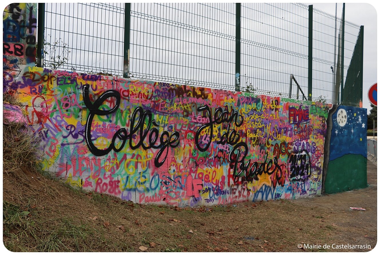 Fresque réalisée par les collégiens de Jean-de-Prades sur le mur du Stade Alary