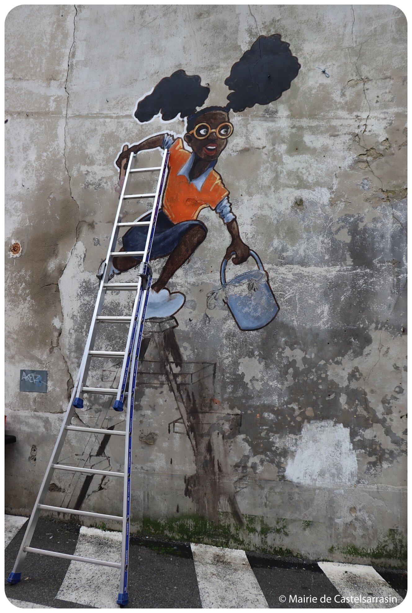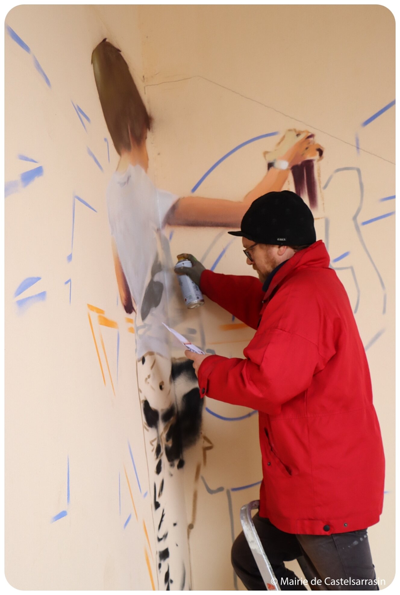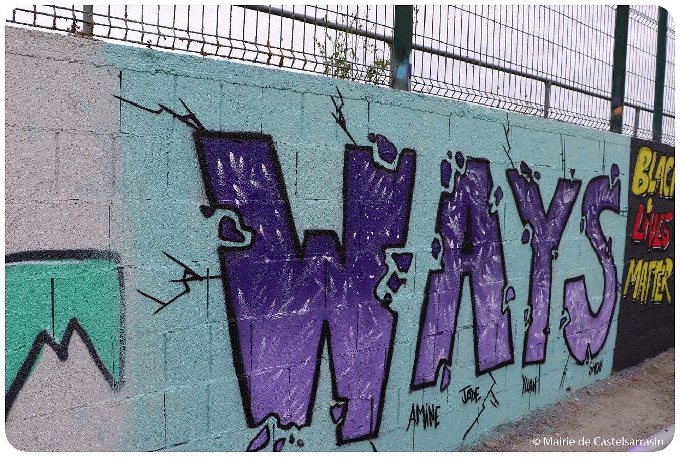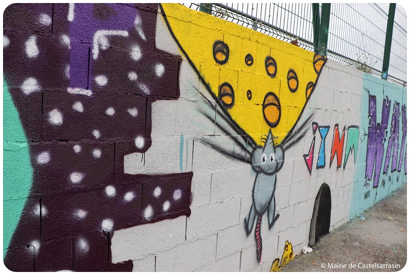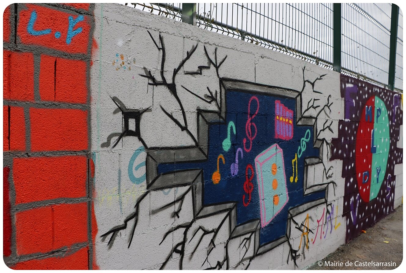 Fresque réalisée par les collégiens de Jean-de-Prades sur le mur du Stade Alary