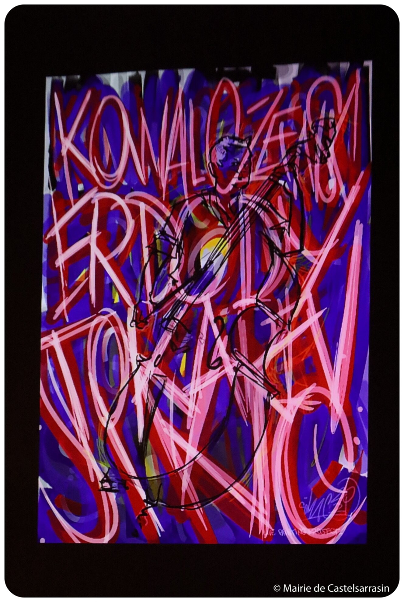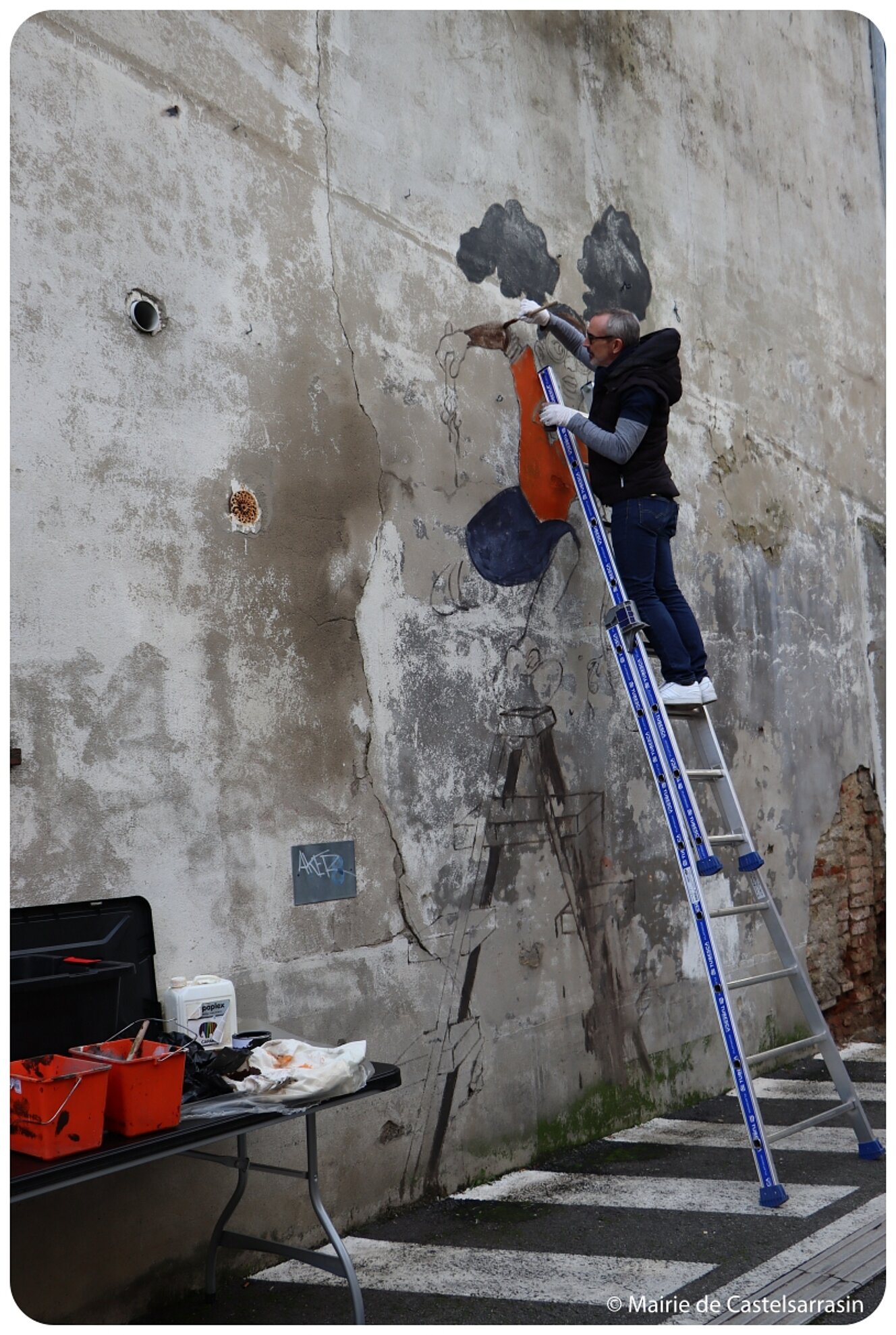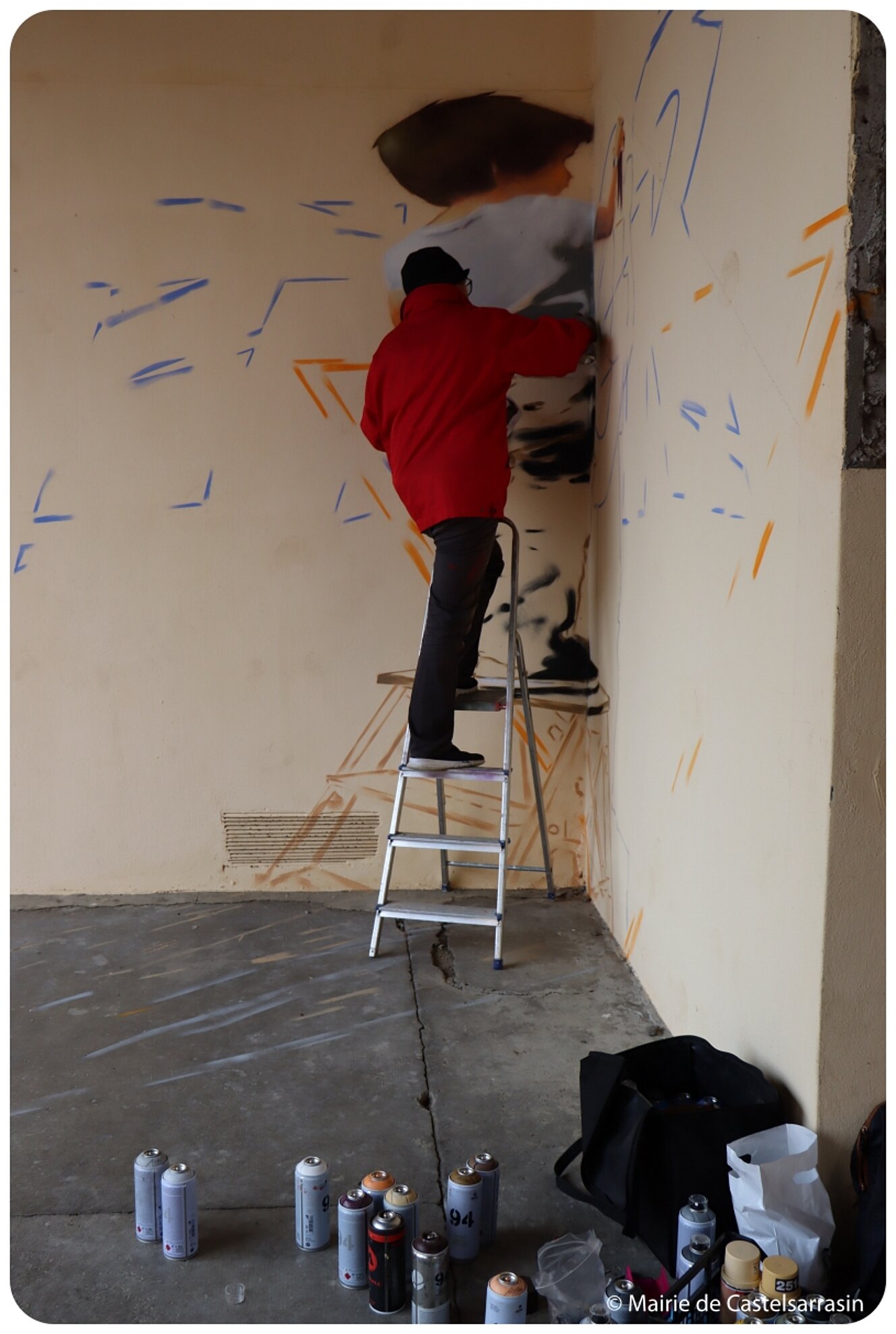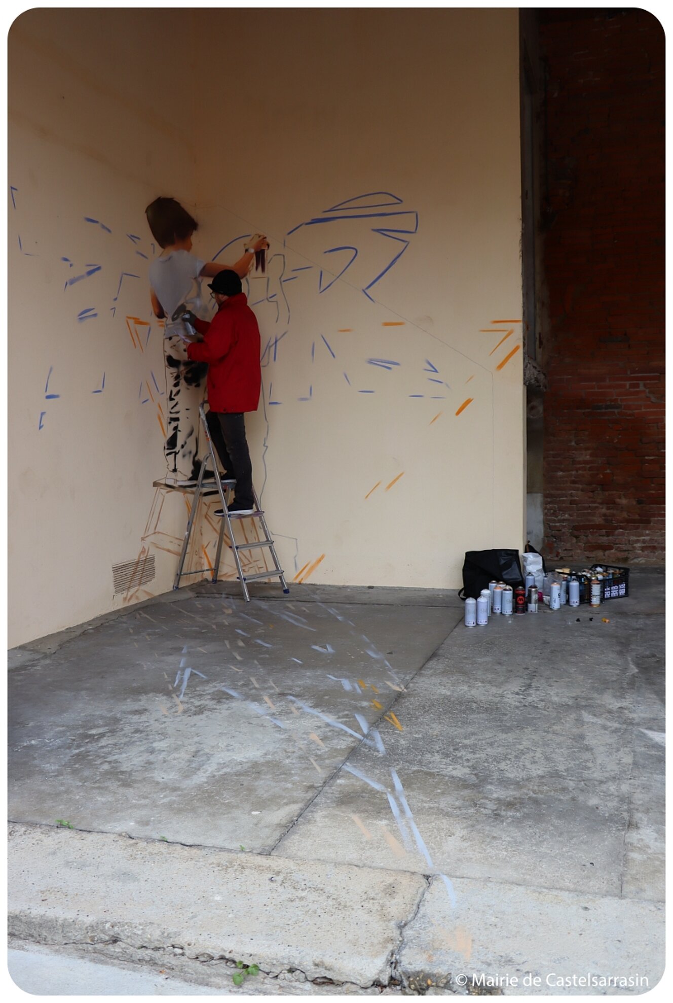 Fresque réalisée par les collégiens de Jean-de-Prades sur le mur du Stade Alary