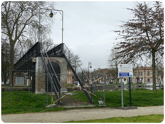 Le 7 mai 1882, le Conseil Municipal vote pour un projet de « pont-passerelle » pour piétons, avec possibilité de transformation ultérieure pour le passage des bestiaux. L’ingénieur des établissements Rengade d’Agen dresse un projet estimé à 8 356 F. L’entreprise Catal de Castelsarrasin déposera aussi une offre.