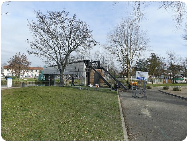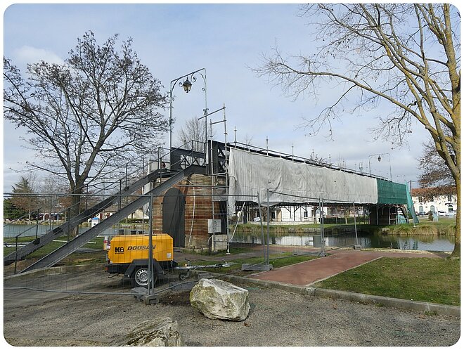 Jusqu’en 1888, la concrétisation se fait attendre, alors que des plans sont déposés le 13 juin 1886, avec le vote d’un budget de 11 000 F (un emprunt sera souscrit). L’attente des diverses autorisations ministérielles nécessaires et une période de chômage du canal retarde le projet.