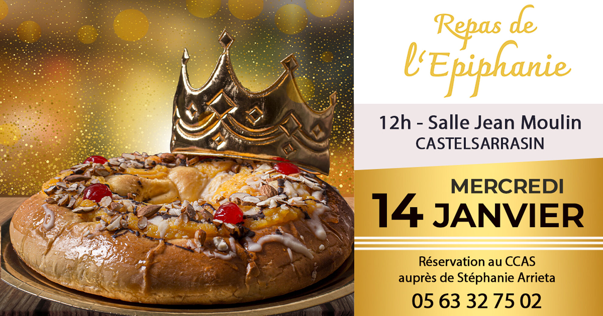 Le centre communal d'action sociale (CCAS) de Castelsarrasin propose un repas où les rois et les reines seront à l'honneur en cette période d'épiphanie. Repas suivi d'une après-midi dansante animé par l'orchestre Jean ROBERTY.