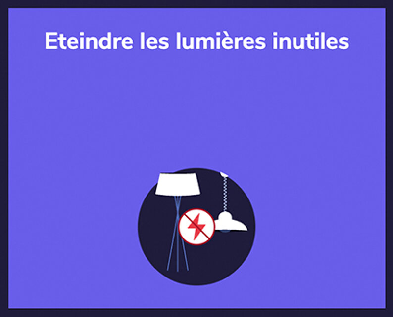 - Limiter le nombre de lumières allumées dans les pièces et éteindre dans toutes les pièces inoccupées.