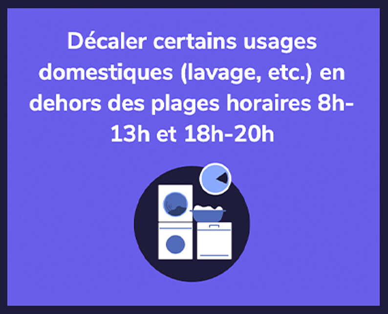 En cas de signal orange ou rouge, l’objectif est d’adopter des gestes simples pour réduire notre consommation entre 8h et 13h et entre 18h et 20h.
