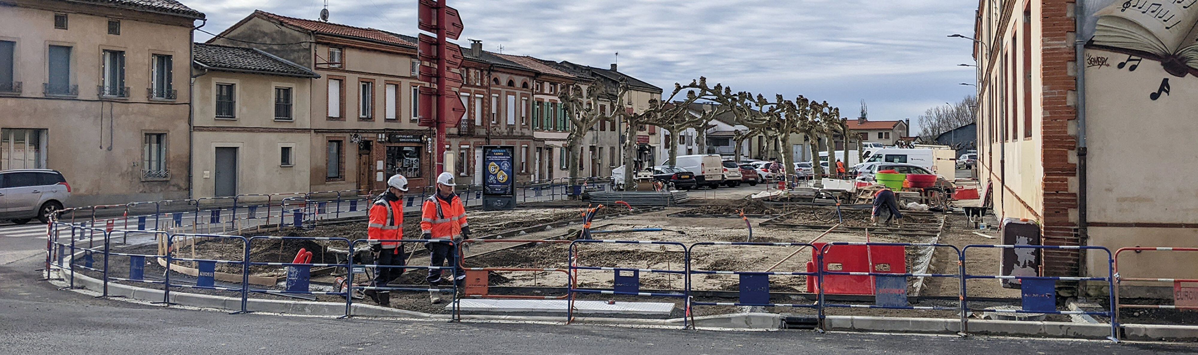La météo défavorable a ralenti la dernière phase des travaux, qui concerne le Jardin de l’École de Musique et la reprise des trottoirs et des cheminements piétons côté parking. Il n'y a pas d'impact sur la circulation, ni sur l'accès aux commerces.